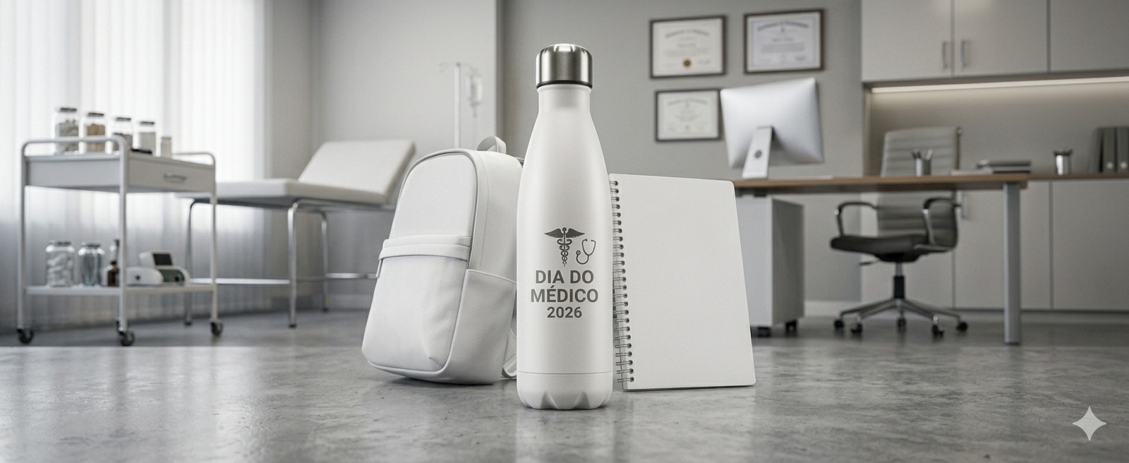 "Para quem cuida de nós em todas as horas, o nosso fôlego e gratidão."B. Organização e TecnologiaA rotina médica envolve muitas anotações e o uso constante de dispositivos móveis.O Brinde: Cadernos tipo Moleskine com capa de couro ou Power Banks de indução.A Mensagem: "Sua dedicação merece o melhor suporte. Feliz Dia do Médico."C. Experiência de DescompressãoApós horas de tensão, o autocuidado é essencial.O Brinde: Kits de Aromaterapia, Vinhos Selecionados ou Massageadores portáteis.A Mensagem: "Cuidar de você também é nossa prioridade."3. Top 3 Brindes Mais Desejados em 2026Garrafas Térmicas com Display de Temperatura: Praticidade para manter o café ou a água na temperatura ideal durante cirurgias e consultas longas.Necessaires Organizadoras Premium: Ideais para médicos que transitam entre vários hospitais e precisam levar seus itens pessoais com higiene e estilo.Canetas de Metal com Escrita Suave: Um clássico que nunca perde o valor, especialmente se vier em um estojo personalizado.Dica de Especialista: A Personalização DiscretaPara o público médico, evite logos gigantescos. Prefira uma personalização minimalista (apenas as iniciais do médico ou o logo da instituição em um canto discreto). Isso aumenta a chance de o profissional utilizar o brinde em ambientes públicos e sociais.